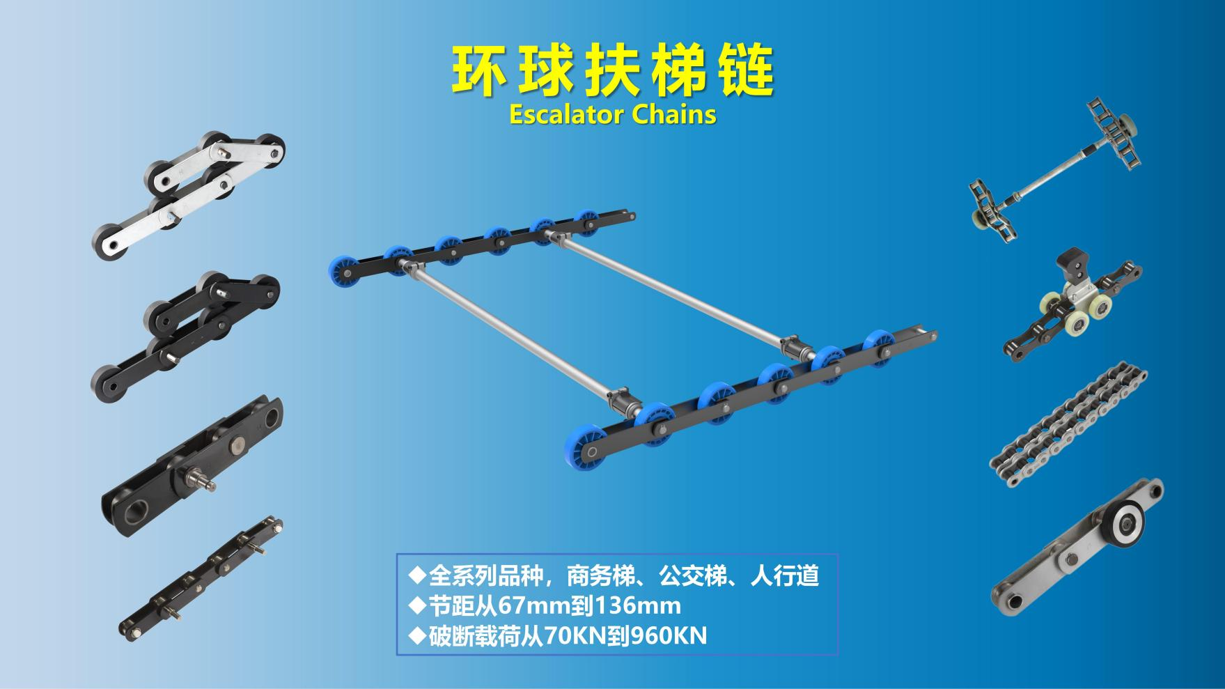 公司生产各类传动链条、输送链条、曳引链条和特种用途链条,具备高强度、高耐磨、抗疲劳、高精度等核心优势,产品广泛应用于工程机械、物流输送、自动扶梯、水泥、矿山、农业机械、起重提升、健康医疗、停车设备等领域。